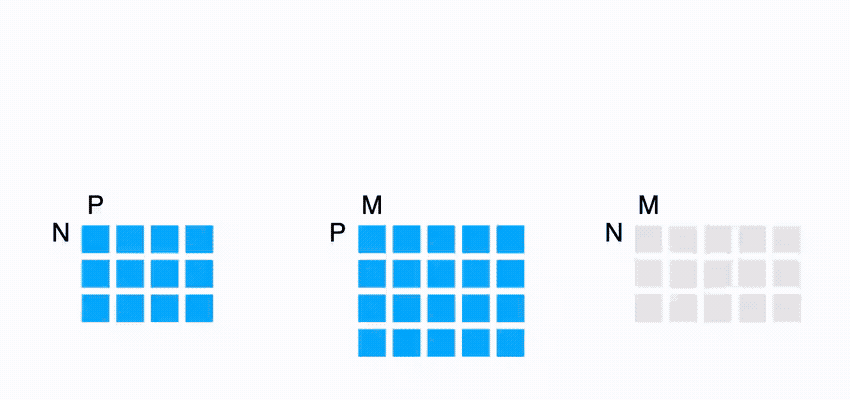 - 矩阵和矩阵的乘法 \(AB\) 需要 \(M\) 个沿着矩阵\(B\)列方向的矩阵和向量乘法, 也就是 \(2NPM\) 个浮点运算.