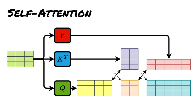 self-attention即自注意力,意思是所有的\(Q,K,V\)来自于同一个序列,对于SDPA中\(Q,K,V\)相同,对于MHA,\(Q,K,V\)相同但是会经过不同的线性层变换。